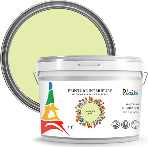 Характеристики Paritet Краска интерьерная 2,5л цвет: мятный чай