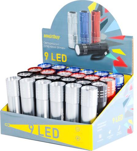 SmartBuy Фонарь display-box 24, светодиодный, алюминиевый, 9 LED, 3*ААА